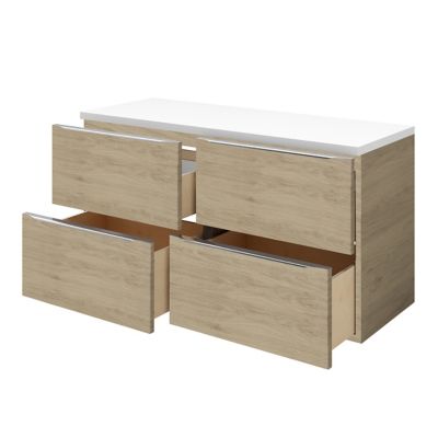 for "Media.castorama.fr Goodhome Imandra 120 : Meuble sous vasque à suspendre GoodHome Imandra blanc 120 cm + plan de toilette Hartland 183 cm ..."